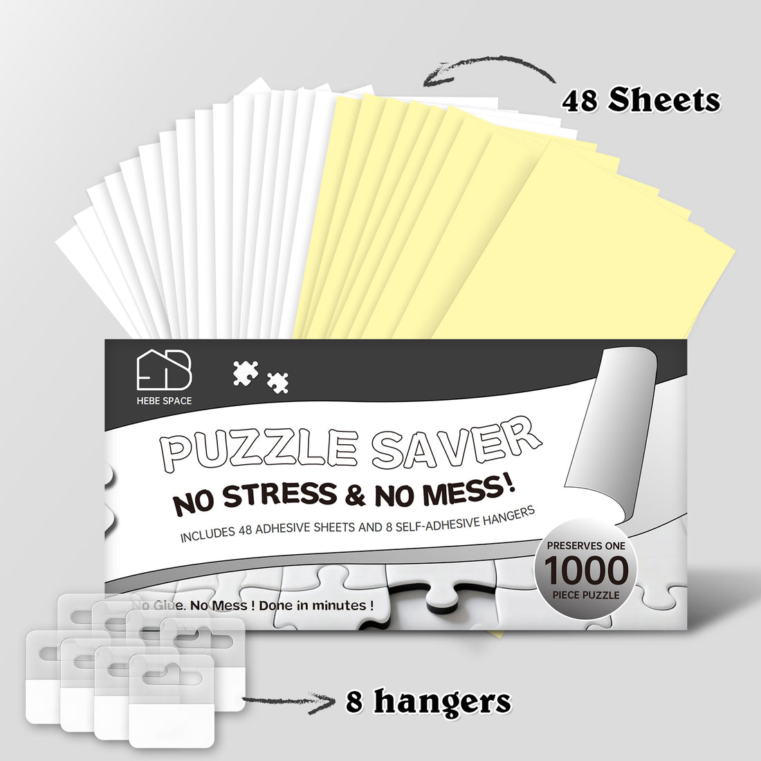 HEBESAPCE 48 Puzzle Saver Sheets with 8 Adhesive Hooks