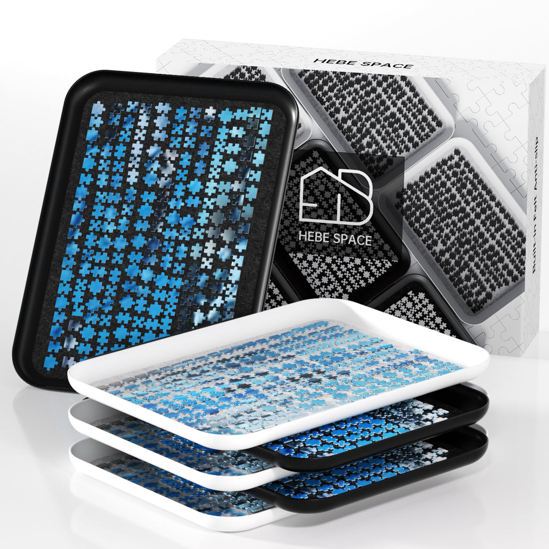 HEBESPACE Anti-Slip Jigsaw Puzzle Sorting Trays – 6 Mixed (Black & White)