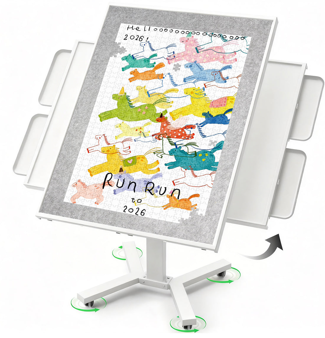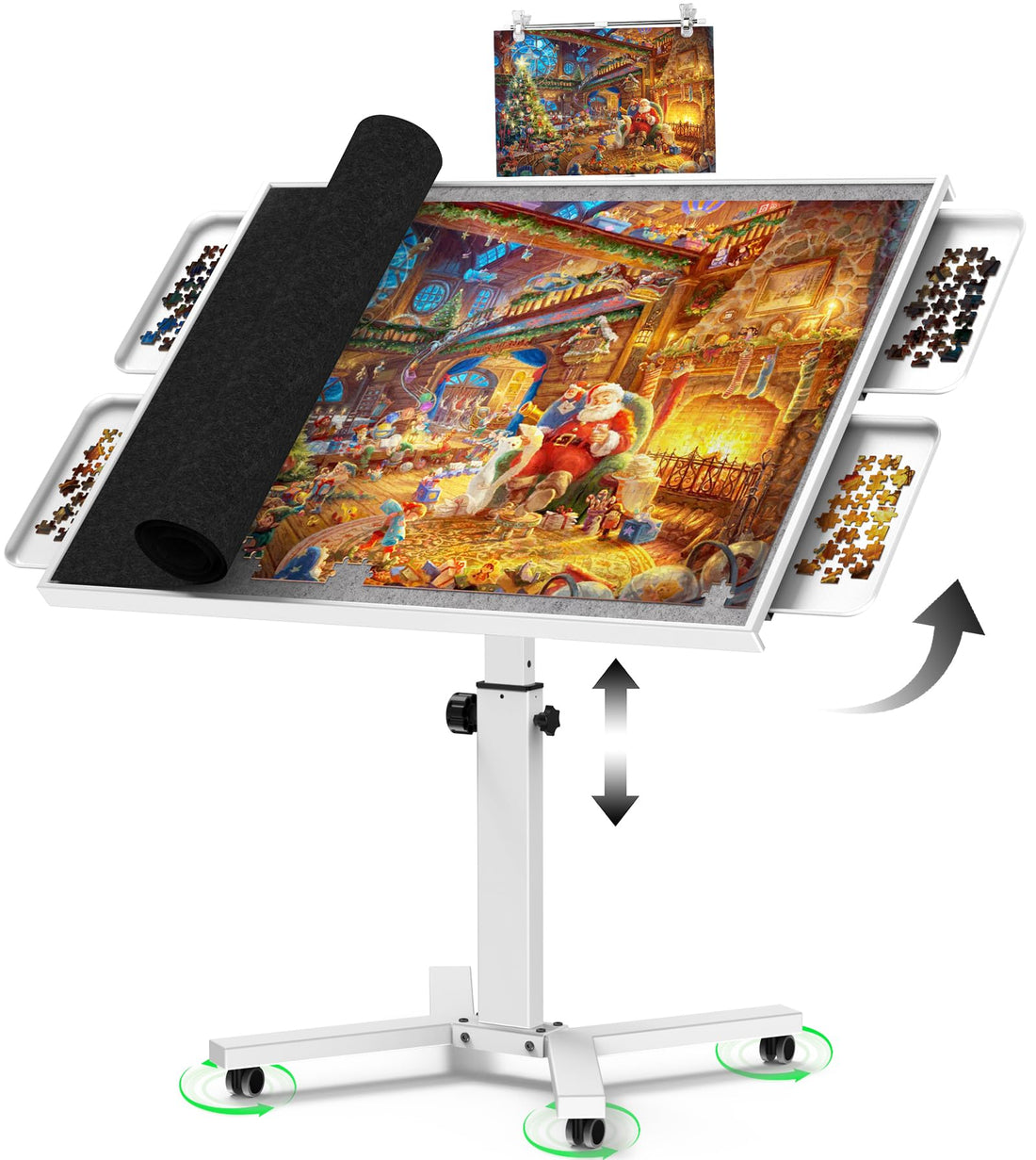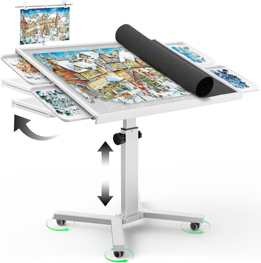 HEBESPACE 1500-Piece Jigsaw Puzzle Table with Horizontal & Vertical Flip Top (White)