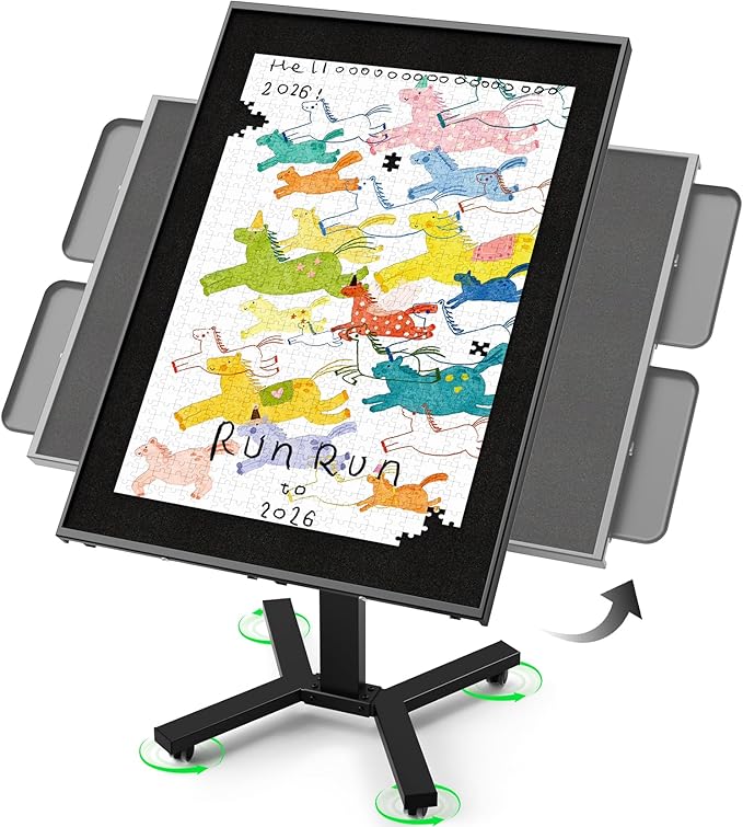 HEBESPACE 2000-Piece Jigsaw Puzzle Table with Horizontal & Vertical Flip Top (Black) (US)